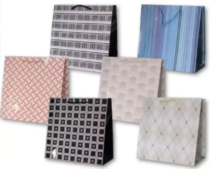 Prezentujemy Państwu nasze wyjątkowe torebki ozdobne laminowane PL-5, dostępne w zestawie składającym się z 54 różnorodnych egzemplarzy. Projekt graficzny torebki jest wybierany losowo, zatem każda z nich jest unikalna i niepowtarzalna. Podkreślają one ważną rangę każdego prezentu, pakowanego z dużą starannością i troską o najmniejsze szczegóły.
