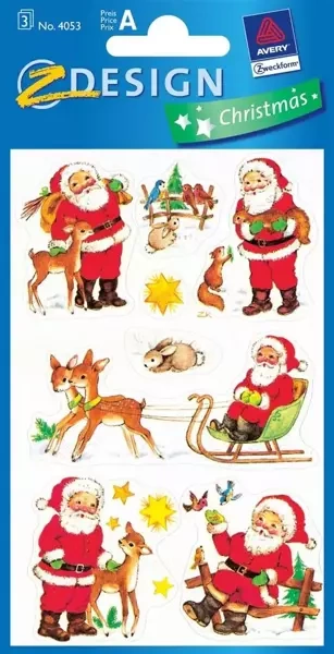 Zestaw składa się z trzech wzorzystych blisterków, a na każdym z nich znajduje się pięć naklejek z przedstawieniamiami Świętego Mikołaja. Dodatkowo, ilustracje posiadają motywy takie jak zajączek, gwiazdka czy ptaszki. Perfekcyjne ozdoby do sprawiania świątecznej atmosfery!EAN: 4004182040539