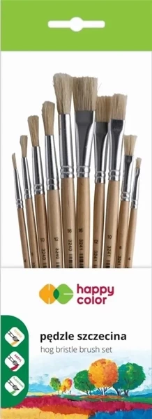 Pakiet zawiera różnorodne pędzle szkolne o różnej wielkości i kształtach. Podzielone są one na dwa typy: płaskie i okrągłe. Pędzle płaskie dostępne są w wielkościach: 4, 6, 10, 12, 16, natomiast pędzle okrągłe oferowane są w tych samych rozmiarach. Dzięki takiej różnorodności, zestaw Happy Color doskonale sprawdzi się w różnego rodzaju pracach plastycznych. Zestaw pędzli Happy Color to doskonały wybór dla uczniów, który z pewnością zaspokoi ich różnorodne potrzeby artystyczne.EAN: 5905130036620