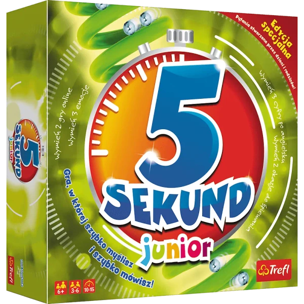 Oto wersja gry "5 Sekund Junior", stworzona specjalnie na rok 2019. Wyprodukowana została przez renomowaną markę Trefl, będąc kierowaną do dzieci powyżej 6 roku życia. Gra zasadza się na 345 pytaniach, które stworzyli inni gracze. Nie tylko dostarcza zabawy dla całej rodziny czy grupy rówieśników, ale także umożliwia rozwijanie umiejętności szybkiego myślenia. Aby wygrać grę, zawodnik musi w ciągu zaledwie 5 sekund odpowiedzieć na zadane pytanie.