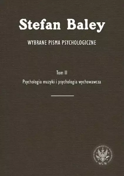Drugi tom prac wybranych Stefana Baleya dotyczy psychologii muzyki (m.in. lokalizacji dychotycznego słyszenia oraz harmonii dźwięków) i psychologii wychowawczej (m.in. psychologii charakteru oraz badań nad etyką i estetyką dzieci w wieku przedszkolnym). Dwutomowa edycja obejmuje najważniejsze publikacje Stefana Baleya, które ukazały się w języku polskim, a także polskie przekłady najbardziej znaczących, a nieznanych dotychczas tekstów, jakie zostały wydane w językach niemieckim i ukraińskim. Stefan Baley to jeden z najwybitniejszych przedstawicieli filozoficznej szkoły lwowsko-warszawskiej i twórca polskiej szkoły psychologii wychowawczej, a w latach 1928—1934 kierownik Katedry Psychologii Wychowawczej Uniwersytetu Warszawskiego.