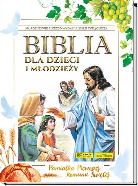 BIBLIA DLA DZIECI I MŁODZIEŻY to najnowsze wydanie książki BIBLIA DLA DZIECI, która w przystępnej i bogato ilustrowanej formie przekazuje historię zbawienia i tajemnicę paschalną. Książka została przygotowana we współpracy z WYDAWNICTWEM PALLOTTINUM. Teksty zaczerpnięto z Biblii Tysiąclecia, która stanowi oficjalny przekład Pisma Świętego, używany w Kościele katolickim w Polsce.