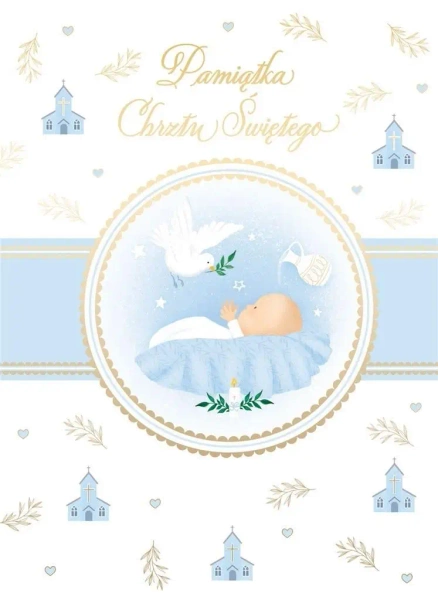 Niebieski karnet B6 na Chrzest z praktyczną kieszonką