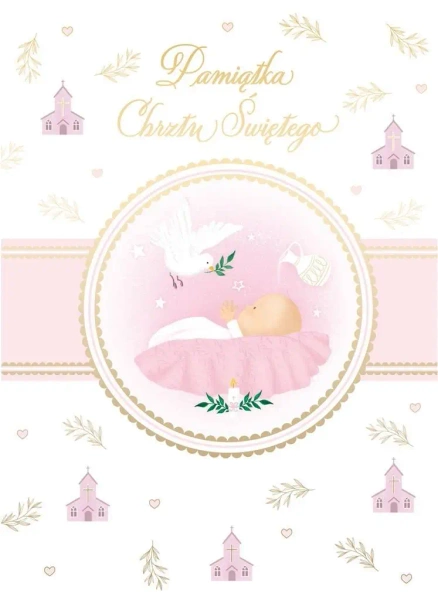 Karnet B6 Chrzest z kieszonką - różowy - Henry