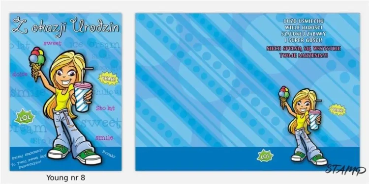 Karnet Young B6 + koperta wzór nr 008 Urodziny - Stamp