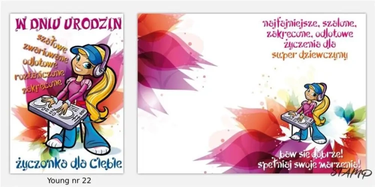 Karnet Young B6 + koperta wzór nr 022 Urodziny - Stamp