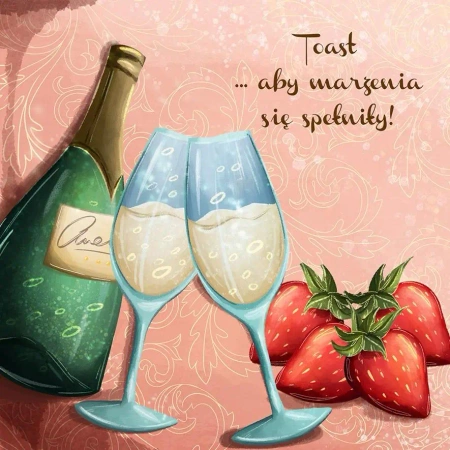 Atrakcyjny Karnet Szampan w wymiarach 15x15 cm