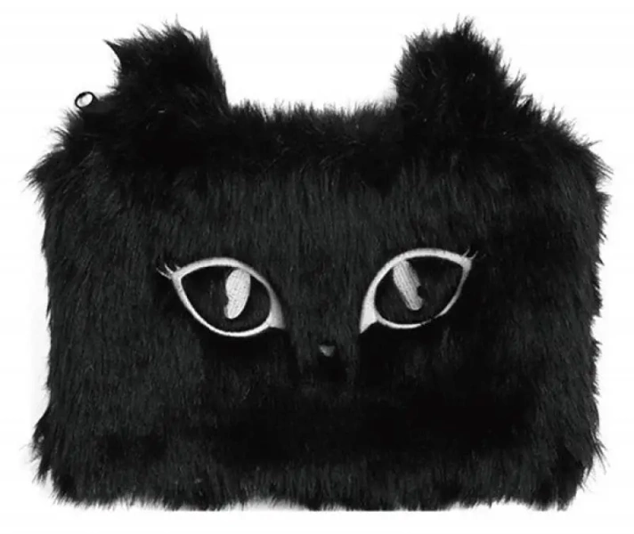 Piórnik-saszetka włochata, na suwak, czarna - kot - Memoris