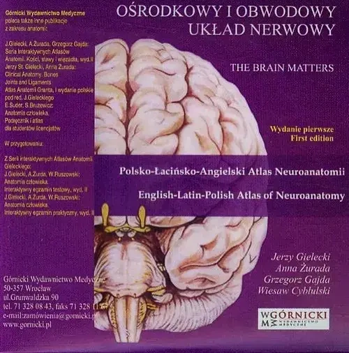 Ten interaktywny atlas neuroanatomii zawiera opisy struktur ośrodkowego, obwodowego i autnomicznego układu nerwowego w formie klasycznych rycin anatomicznych, oryginalnych fotografii mózgowia, a także zdjęć z rezonansu magnetycznego i tomografii komputerowej. Interaktywny Atlas Ośrodkowego i Obwodowego Układu Nerwowego jest najtrudniejszym przedsięwzięciem, jakie można sobie wyobrazić w nauczaniu anatomii. Do dnia dzisiejszego nie doczekaliśmy się ani atlasu, ani książki, które w pełni satysfakcjonowałyby studentów, naukowców czy klinicystów. (...) Grupa studentów testujących niniejszy program nazwała go "Gadające Mózgowie" - jestem jednak pewien, że na gadaniu się nie skończy.Jerzy St. GieleckiPolecamy także inne publikacje z anatomii:J. Gielecki, A. Żurada, G. Gajda: Seria Interkatywnych Atlasów Anatomii. Kości, stawy, więzadła, wyd. IIIJ. Gielecki, A. Żurada: Clinical Anatomy. Bones, Joints and LigamentsAtlas Anatomii Granta, I wydanie polskie pod red. J. GieleckiegoE. Suder, S. Brużewicz: Anatomia człowieka. Podręcznik