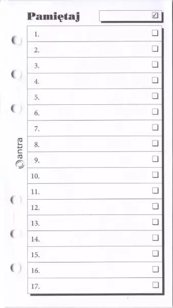 Zaktualizuj swój organizer dzięki wysokiej jakości wkładowi o wymiarach 171x95 mm, który przypomni o tym, by zawsze pamiętać o ważnych sprawach i terminach. Wkład składa się z 20 kartek, przez co masz pewność, że nie zabraknie Ci miejsca na wpisywanie swoich notatek i zadań. Dedykowany do organizerów z 6 otworami na spine, umożliwiających szybkie i łatwe umieszczenie go w odpowiednim miejscu. Dzięki temu wkładowi, Twoje spotkania, zadania i plany będą zawsze uporządkowane, a także łatwo przypomnisz sobie o ważnych wydarzeniach z życia codziennego. Doskonałe uzupełnienie do Twojego organizera, zyskasz pewność, że wszystko jest uporządkowane i nic nie umknie Twojej uwadze.