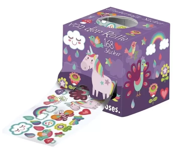 Obdarz swoje notesy, zeszyty czy pojemniki nieco magii za sprawą kompletu naklejek na rolce, który przedstawia jednorożce. Ten zestaw zawiera ponad 168 naklejek, które są pieczołowicie wykonane i przychodzą w uroczym tekturowym pudełku. Prosimy zwrócić uwagę, że te naklejki nie są przeznaczone dla dzieci poniżej trzeciego roku życia. Spraw, aby twoje rzeczy błyszczały magią tych mitycznych stworzeń!