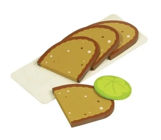 Chrupiące kromki chleba są gotowe do urozmaicenia kreatywnych zabaw i dekoracji różnego rodzaju dodatkami. Stworzone dla dzieci, które chcą nauczyć się, jak komponować zdrowe i smakowite posiłki. Plastyczne i kształtne drewniane rekwizyty pobudzą dziecięcą wyobraźnię oraz rozbudzą ciekawość, czym można przepysznie zjeść.