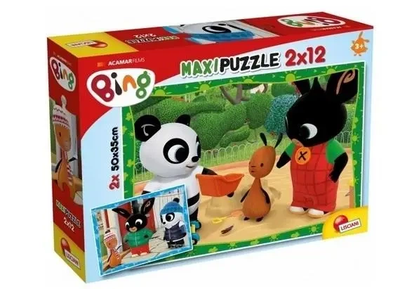 Odkryj fantastyczny zestaw puzzli z popularnym bohaterem - Bingiem i jego przyjaciółmi! W skład tego kolorowego kompletu wchodzi aż 24 elementy, umożliwiające stworzenie dwóch różnych scenek przedstawiających przygody Binga i jego kumpli, w rozmiarze 50 x 35 cm każdy.