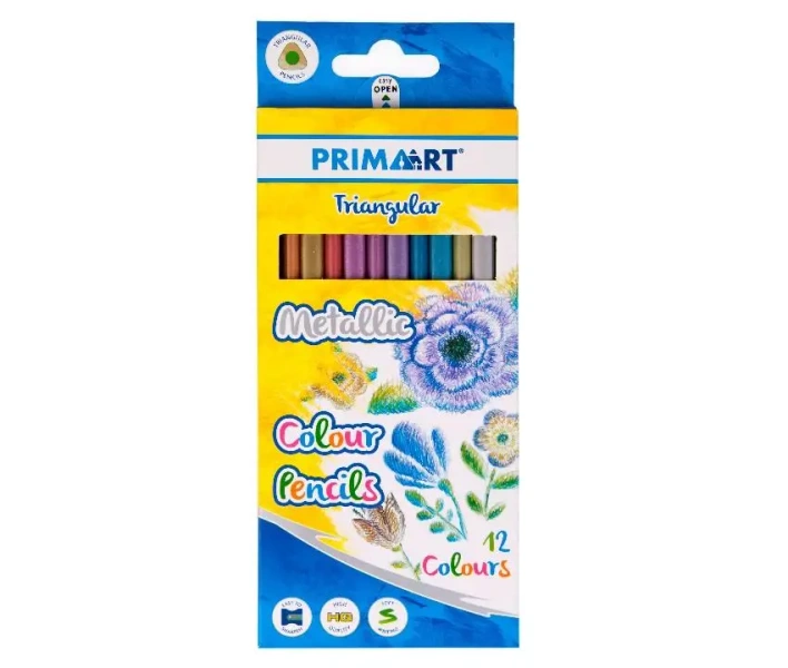 Kredki ołówkowe trójkątne metalizowane Primart 12 sztuk