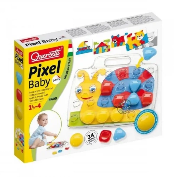 Tworzenie mozaiki poprzez wstawianie kołeczków w perforowaną tablicę jest wspaniałą i twórczą zabawą, która stymuluje rozpoznawanie kolorów, rozwija umiejętności manualne oraz koordynację ruchową. Wszystkie elementy wykonane są z tworzywa wysokiej jakości, są elastyczne i mają bezpieczne, zaokrąglone brzegi. Zestaw składa się z walizeczki, która po rozłożeniu staje się podstawką i tabliczką, w którą dziecko wtyka kołeczki o różnych rozmiarach, tworząc ciekawe wzory i obrazy.