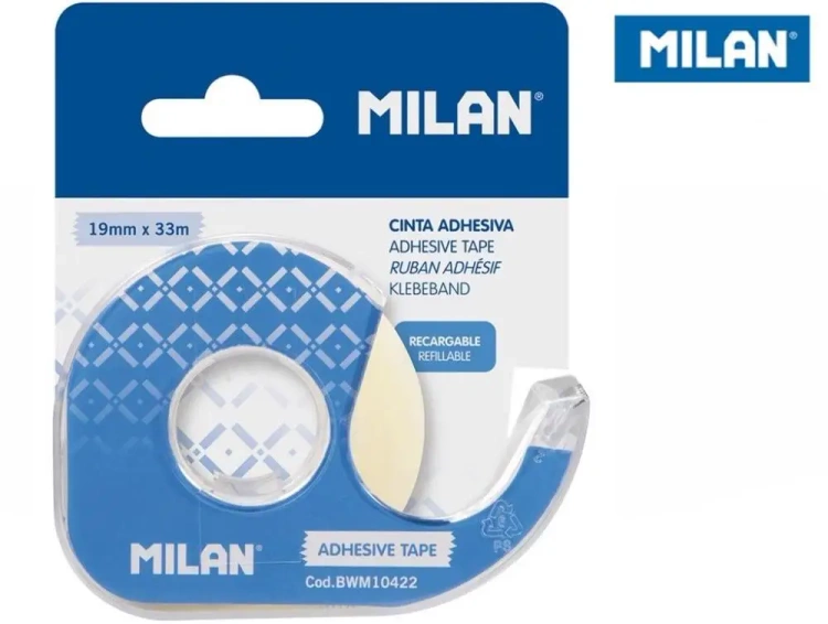 Taśma samoprzylepna o krystalicznej przezroczystości marki MILAN sprawi, że wszelkie prace przyklejania, łączenia czy wzmacniania papierów czy dokumentów stają się proste i efektywne. Taśma ma szerokość 19 mm oraz długość 33 m, co zapewnia długotrwałe zastosowanie. Dyspenser z metalowym ostrzem pozwala na łatwe i precyzyjne odcinanie taśmy, a jego trwałość gwarantuje wielokrotne użytkowanie. Innym atutem taśmy samoprzylepnej MILAN jest to, że nie żółknie z upływem czasu, dzięki czemu wygląd klejonych lub wzmacnianych materiałów pozostaje nienaruszony. Hurtownia internetowa matfel.pl oferuje taśmę o średnicy 5,5 cm w bardzo przystępnej cenie. Dzięki niej prace biurowe, rękodzielnicze czy szkolne będą jeszcze łatwiejsze i przyjemniejsze.EAN: 8411574084150