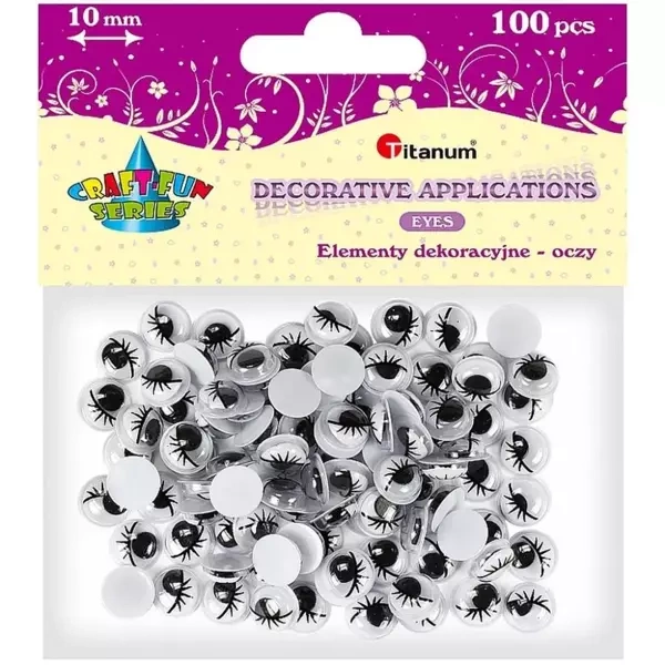 Oczy bez kleju z rzęsami 10mm 100szt - Titanum