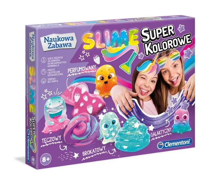 Dzięki temu zestawowi, można stworzyć pachnące slimy, błyszczące slimy z brokatem, „magiczne” w kolorach tęczy jak grzywa jednorożca oraz oszałamiające, opalizujące galaktyczne slimy przypominające kosmiczne galaktyki.