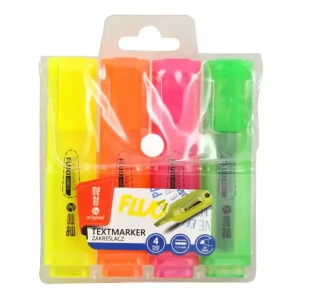 - W skład zestawu wchodzi 4 różnokolorowe zakreślacze