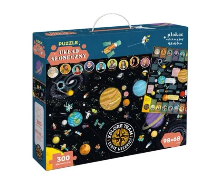 Zafascynuj się wszechświatem, układając Wielkoformatowe puzzle Układ Słoneczny dla fanów kosmosu. Odkrywaj najbardziej interesujące miejsca i badaczy naszego Systemu Słonecznego, a jednocześnie poszerzaj swoją wiedzę na temat astronomii, inżynierii i kosmicznych odkryć.Poznaj niezwykłości Układu Słonecznego z puzzlami edukacyjnymi