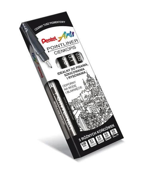 Cienkopisy Pointliner 5szt. PENTEL - niezastąpione w rzeźbieniu w tuszu