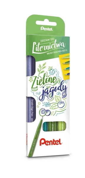 Zestaw 4 pisaków pędzelków do kaligrafii i liternictwa zielone jagody 4 kolory