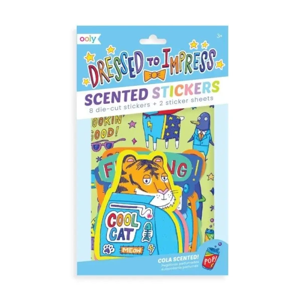 Zestaw pachnących naklejek Ooly Przebieranki zawiera: 8 dużych naklejek typu die-cut; 2 arkusze małych naklejek o wymiarach ok. 14 x 21,6 cm; naklejki o zapachu coli, który uwolniają po potarciu. Zachęcają do twórczej zabawy i są doskonałym dodatkiem do kart, pamiętników, listów itp. Idealnie komponują się z innymi pachnącymi dodatkami od Ooly.