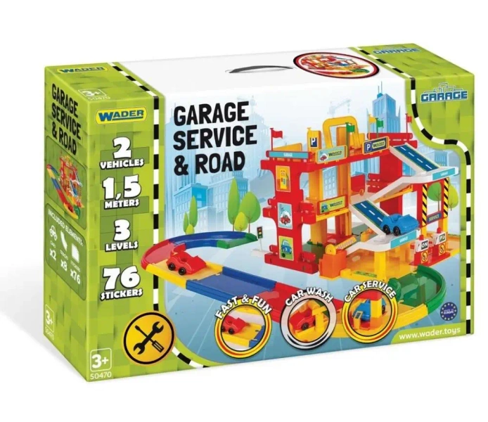 Wszystkie części zabawki są wykonane z wysokiej jakości, bezpiecznego dla dzieci i trwałego tworzywa, co gwarantuje długie utrzymanie kształtu i kolorów elementów. Garaż składa się z różnokolorowych, łatwych w montażu elementów, z których powstaje wielopoziomowy garaż o wysokości 36 cm oraz zewnętrzna trasa wjazdowa do garażu o długości 3 m. W skład zestawu wchodzi: winda transportująca samochody na dowolny poziom, rampa, myjnia samochodowa, dystrybutor paliwa, serwis samochodowy, liczne dekoracje i naklejki, a także 2 autka. Prosta w montażu konstrukcja gwarantuje bezproblemowy czas spędzony na tworzeniu własnego garażu. Zabawka umożliwia dzieciom kreowanie różnych scenariuszy zabaw, dzięki czemu maluchy nie będą się nudzić. Garaż Serwis z drogą jest idealny dla dzieci powyżej 3 roku życia. Komplet zapakowany jest w estetyczne pudełko, co czyni go doskonałym prezentem na różne okazje.EAN: 5900694504707