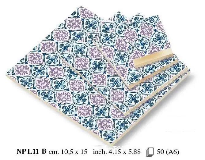 Luksusowy notes charakteryzujący się gładkimi kartkami o pastelowym, kremowym odcieniu, ukrytymi pod okładką z ozdobnym motywem. Ta notatnik ma praktyczny format A6 i zawiera 50 stron. Produkt ten jest przedstawicielem ekskluzywnej kolekcji gaklanteryjnej, wytworzony w uznanej włoskiej manufakturze.EAN: 8018646013546