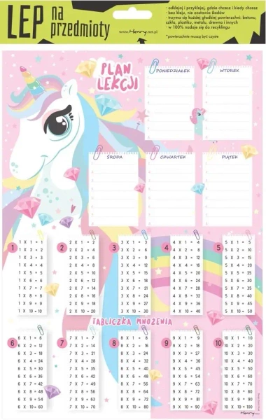 Plan lekcji nie tylko jest funkcjonalny, ale też dba o środowisko - 100% produktu nadaje się do recyklingu. To nie tylko praktyczne rozwiązanie, ale też ekologiczne! Zadbaj o najmłodszych i środowisko naturalne z elektrostatycznym planem lekcji A4 - Jednorożec Henry.EAN: 5907465662277