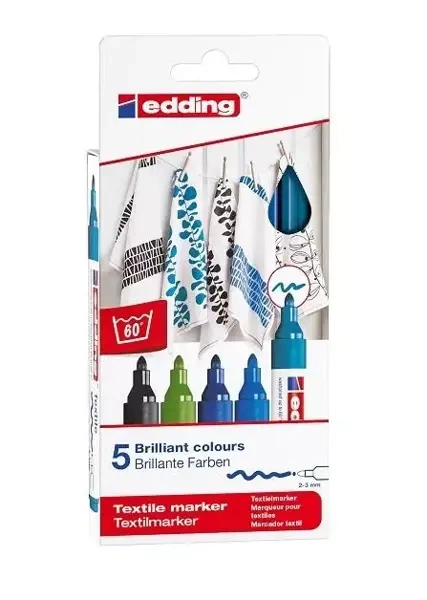 Kompletny zestaw zawiera 5 markerów tekstylnych o zimnej kolorystyce. Są one idealne do tworzenia kolorowych i żywych dekoracji na wszystkich rodzajach jasnych tkanin, takich jak bawełna, jedwab czy len.Wysoce odporny i wytrzymały