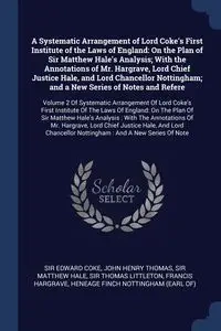 - On the Plan of Sir Matthew Hale's Analysis; With the Annotations of Mr. Hargrave, Lord Chief Justice Hale, and Lord Chancellor Nottingham; and a New Series of Notes and Refere