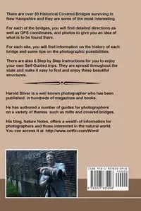 New Hampshire's Covered Bridges**Color Edition** A Source book for Travelers, Photographers, Explorers** Descriptions to all of New Hampshire's 54 Remaining Historic Covered Bridges, as well as color photos of each one. **GPS Positions**Written Driving Directions**Instructions for Self-Guided Tours which include tours of Carroll County, Cheshire County, Coos County, Grafton County, Merrimack County and Sullivan County**Basic Info for each Site**Photo Tips for each Site**Truss types described and illustrated**Short History of Covered Bridges**Look also for an eBook Edition