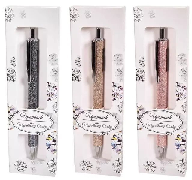 Powierzchnia brokatowa korpusu przyciąga wzrok i dodaje długopisowi wyjątkowego blasku.Dostępne kolory brokatu