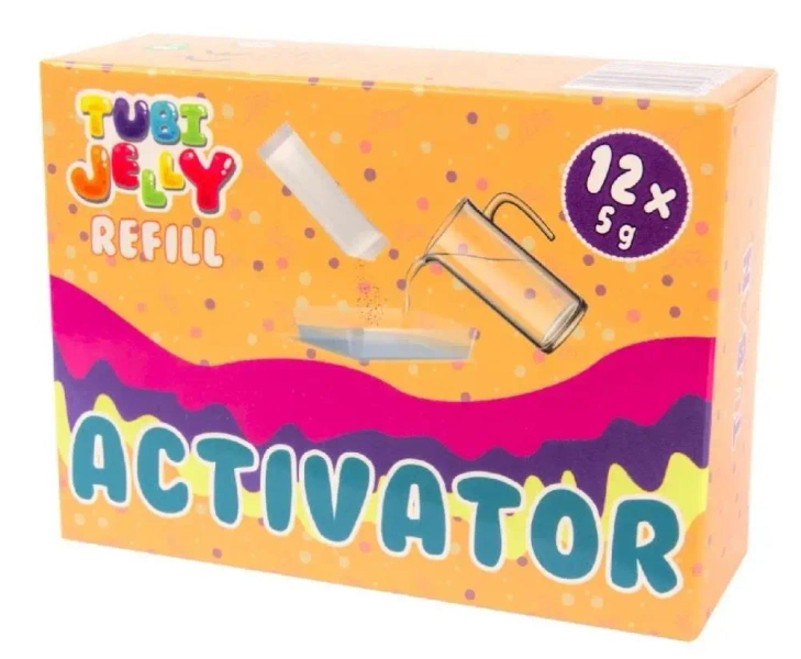 Odkryj aktywator do samodzielnego tworzenia i utwardzania figurek 3D Tubi Jelly. Produkt ma formę proszku, który zmienia swoje właściwości po starannym wymieszaniu z wodą. Opakowanie zawiera 12x5g produktu i przeznaczone jest do uzupełniania zestawów Tubi Jelly. Zalecany wiek: 8+.