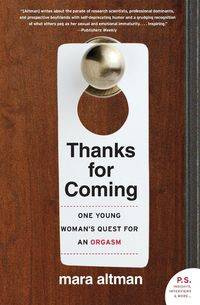 And so she embarked on a wildly funny, emotionally resonant odyssey--a journey both inside and outside herself--only to discover that, for Mara, orgasm was connected to a part of her that no vibrator could reach. Thanks for Coming is one woman's look at our obsession with and anxiety over the female orgasm. Her quest to get her own yields poignant results that will surprise even the sexually awakened among us. From sex shows to sex conventions, from a therapist's couch to her own couch, from the bedroom to the bar, Mara Altman proves to be a guide as hilarious as she is investigative.