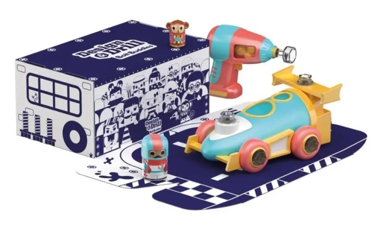 Design & Drill(R): Samochód wyścigowy to wymarzony zestaw dla małych konstruktorów, zawierający przyjazną dzieciom zabawkową wkrętarkę, samochód wyścigowy składający się z sześciu części, dziewięć śrub oraz dwie zabawki Bolt Buddy. Wkrętarka potrzebuje 3 baterii AAA (brak w zestawie). Budowanie własnego samochodu wyścigowego z kolekcji Design & Drill(R) Bolt Buddies stanie się pasjonującą zabawą. Dzieci będą mogły użyć wkrętarki do skonstruowania pojazdu, umieścić kierowcę Buddiego za kierownicą oraz jego przyjaciółkę Małpkę z tyłu, a następnie rozpocząć emocjonujący wyścig.Pit Stop - ważny element zabawy