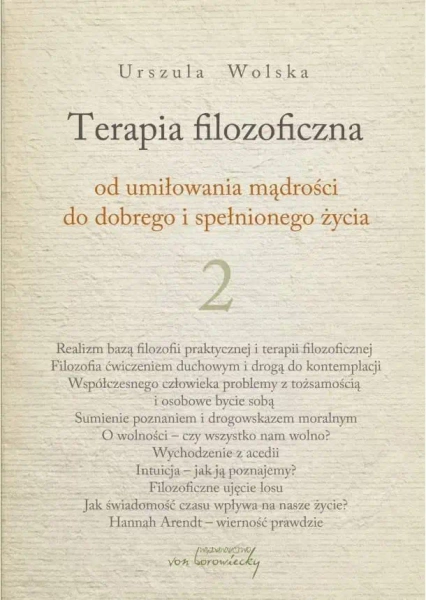 Pomysł na serię książek zatytułowanych Terapia Filozoficzna narodził się, kiedy uzbierało się już trzydzieści tekstów z filozofii praktycznej, które napisałam i które czytałam oraz omawiałam na form Salonów Filozoficznych. (...) Wszystkie teksty są też fundamentem prowadzonej przeze mnie terapii filozoficznej. Każdy tom zawiera 9 tekstów problemowych, a ostatni, 10. tekst, poświęcony jest wybranemu przeze mnie filozofowi. Wybieram myślicieli, którzy są mi bliscy i których teksty pomagają nam w czynieniu refleksji nad naszym życiem.