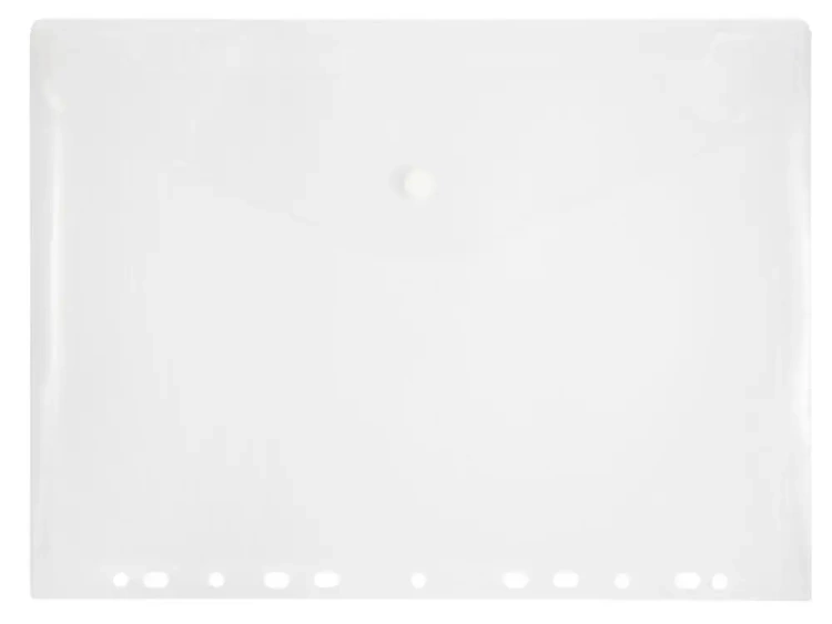 To doskonała koperta wykonana z transparentnego polipropylenu w kolorze bezbarwnym, o grubości 0,18 mm. Praktyczne zapięcie na zatrzask gwarantuje bezpieczne przechowywanie dokumentów, a europerforacja pozwala na łatwe włożenie teczki do segregatora - orientacja pozioma. Wymiary teczki to 31,2x23,5 cm, idealne do przechowywania dokumentów w formacie A4.