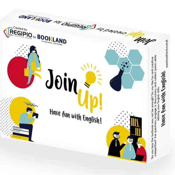 Join UP nie tylko śmieszy, ale również aktywizuje uczniów do ćwiczenia angielskiego zarówno pisemnie, jak i ustnie. Zawarte w niej dwa unikalne tryby gry (GRAMMAR CHALLENGE oraz FUNCTION CHALLENGE) rozwijają naukę w ośmiu różnorodnych kategoriach tematycznych.