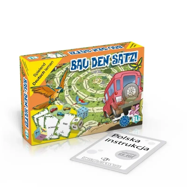 Bau den Satz! to planszówka z językiem niemieckim i motywami podróżniczymi. Uczestnicy gry rywalizują, jednocześnie ucząc się i ćwicząc konstrukcję zdań w języku niemieckim. Na swojej drodze przez dżunglę spotykają różne czasowniki, które muszą umiejętnie wykorzystać. Grę wyróżnia jej fantastyczne połączenie nauki i zabawy.Właściwości gry: