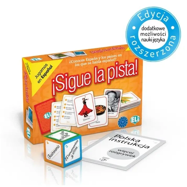 Nieograniczone możliwości poznawania kultur krajów hiszpańskojęzycznych z naszą nowatorską grą "Sigue la pista". Przy preparacji tego produktu skupiliśmy się na aspektach kulturowych, zabytkach, popularnych miejscach, charakterystycznych dla danego kraju ludziach i produktach, które warto poznać.Gra „Sigue la pista” została zaprojektowana tak, aby każda z kart zawierała aż pięć różnych wskazówek, dzięki czemu gra jest nie tylko edukacyjna, ale także pełna niespodzianek i emocji.