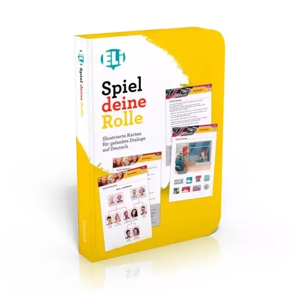 Spiel deine Rolle - ilustrowane karty konwersacyjne służące do zabaw językowych polegających na odgrywaniu ról, umożliwiające ćwiczenia konwersacji w języku niemieckim. Poziom trudności językowej: gra oferuje 4 poziomy trudności w zakresie od A1 do B2 według Europejskiego Systemu Opisu Kształcenia Językowego, co umożliwia wykorzystanie kart na poziomie początkującym i średnio zaawansowanym oraz zaawansowanym. Przedział wiekowy graczy: nastolatki, młodzież, dorośli. Cele językowe: – nauka mówienia i samodzielnego budowania wypowiedzi; – ćwiczenie swobodnej komunikacji w języku niemieckim; – ćwiczenie wchodzenia w interakcje społeczne z innymi użytkownikami języka niemieckiego; – nauka podstawowego słownictwa i struktur języka niemieckiego; – rozwijanie umiejętności związanych z prowadzeniem konwersacji. Sposób wykorzystania kart: Do dyspozycji jest 75 kart odnoszących się do 36 typowych sytuacji komunikacyjnych i scenek z życia codziennego w szkole, w domu, w pracy, w kontaktach oficjalnych oraz nieformalnych. Wprowadzone do nich zostały jednak nieszablonowe i zaskakujące elementy wymagające twórczego myślenia i spontanicznych odpowiedzi. Każdej sytuacji komunikacyjnej poświęcone są dwie karty stanowiące parę i przeznaczone do odgrywania scenki przez dwie osoby (z wyjątkiem 3 tematów, którym poświęcone są po 3 karty służące do zabawy w grupach trzyosobowych). Na wierzchniej stronie każdej karty znajduje się schemat konwersacji ze wskazówkami, za którymi powinni podążać uczestnicy zabawy układający swój dialog. Z kolei na odwrocie umieszczone zostały informacje dostarczające niezbędnej wiedzy do odegrania scenki (przykładowo karta Im restaurant zawiera rysunek karty dań ze składnikami potraw oraz cenami). W dolnej części karty znajdują się ponadto słówka i wyrażenia przydatne do przeprowadzenia konwersacji zgodnie ze scenariuszem rozmowy oraz rozszerzające zasób słownictwa w taki sposób, aby umożliwić uczestnikom zabawy wyjście poza zaproponowany schemat. Zastosowanie: Karty mogą być wykorzystywane przez nauczycieli i lektorów w formie ćwiczeń uzupełniających tradycyjne zajęcia lub w ramach typowych zajęć z konwersacji (praca w parach lub w grupie). Mogą być również używane w warunkach domowych (zabawy z przyjaciółmi i rodziną, gry towarzyskie lub prywatne lekcje języka niemieckiego). Zestaw zawiera następujące elementy: – 75 kart konwersacyjnych formatu 19,5x13cm (w tym 33 tematy w postaci par kart oraz 3 tematy zawierające po 3 karty); – instrukcję w języku niemieckim wraz z przykładem dialogu ułożonego w oparciu o jedną z kart. Zalety pozajęzykowe: Karty Spiel deine Rolle uczą kreatywności i aktywności, doskonalą umiejętności interpersonalne i społeczne, a także dzięki swojej luźnej i zabawowej formie wpływają pozytywnie na rozładowanie napięcia i stresu w trakcie zajęć. Spis tematów: Poziom A1: - Eine neue Freundschaft - Das Treffen - Die Familie - Freizeit - Das Wetter - Das Haus - Der Wochenplan Poziom A2: - Die Einladung - Gemüsestand - Auf der Straße - Am Bahnhof - Im Restaurant - Das Rezept - Urlaubspläne - Beim Arzt - Im Bekleidungsgeschäft - Das Geschenk - Ein beruflicher Termin Poziom B1: - Fernsehprogramme - Am Flughafen - Im Theater - Auf dem Kommissariat - Ein Jahr im Ausland - Das Vorstellungsgespräch - Das Handelsabkommen - Im Hotel - Das Praktikum - Die telefonische Bestellung - Austausch über den Urlaub Poziom B2: - In der Stadt oder auf dem Land? - Leise Zweifel - Früher und heute - Das Reisebüro - Die Petition - Die virtuelle Kommunikation - Eine europäische Hauptstadt