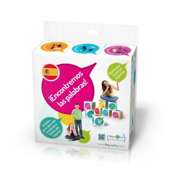 Kostki edukacyjne "¡Encontremos las palabras!" to atrakcyjna metoda nauczania języka hiszpańskiego. Jest to doskonałe uzupełnienie standardowych lekcji języka hiszpańskiego, jak również kursów hiszpańskiego. Można z nich korzystać również w domu, podczas zabawy w grę towarzyską z rodziną lub przyjaciółmi.