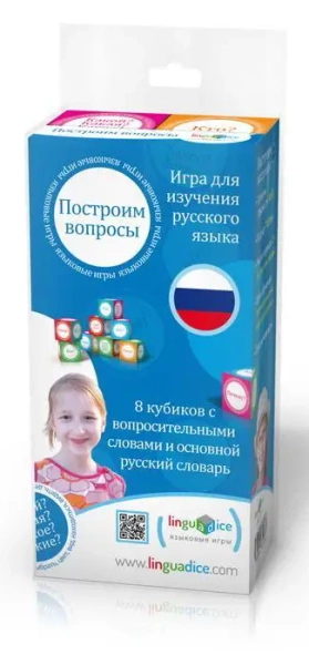 Edukacyjna gra językowa w formie kostek, które pomagą Ci w nauce tworzenia pytań w języku rosyjskim. W grze wykorzystywanych jest osiem kluczowych słówek pytających. TRUDNOŚĆ: Ta gra jest idealna dla osób początkujących (poziom A1-B1 według Europejskiego Systemu Opisu Kształcenia Językowego). KTO MOŻE GRAĆ: Gra jest przeznaczona dla dzieci powyżej 7. roku życia, ale równie dobrze sprawdzi się dla młodzieży i dorosłych. ZALETY:- – umożliwia tworzenie zdań pytających przy wykorzystaniu słówek pytających;