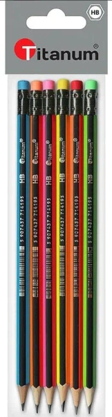 Ołówek z gumką HB Neon paski 6szt - Titanum