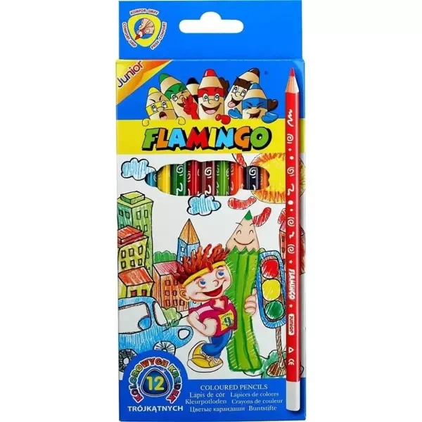 Zestaw składa się z 12 kolorowych kredek ołówkowych, które zaspokoją wszystkie artystyczne zapotrzebowania szkolnych maluchów. Są one wyposażone w łatwe do uchwycenia korpusy z drewna, a także ergonomiczne, trójkątne kształty dla bezproblemowego i wygodnego pisania lub rysowania.