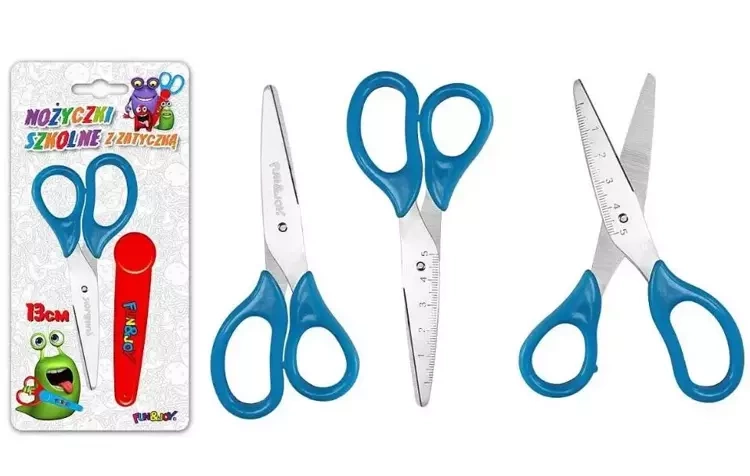 Nożyczki typu mix kolorów, do których wyboru stosowany jest losowy system wysyłki. Każdy model wyposażony jest w ostrze zabezpieczone plastikową zatyczką. Całkowita długość nożyczek wynosi 13 cm. Dodatkowo ostrze posiada podziałkę ułatwiającą precyzyjne cięcie. Produkt dostarczany jest w praktycznym opakowaniu typu blister. Do wyboru są dwa kolory rączki - czerwony lub niebieski.EAN: 5907437639627