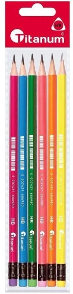 Ołówek z gumką trójkątny HB neonowy 6szt - Titanum