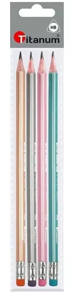 Ołówek z gumką trójkątny HB perłowy 4szt - Titanum